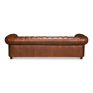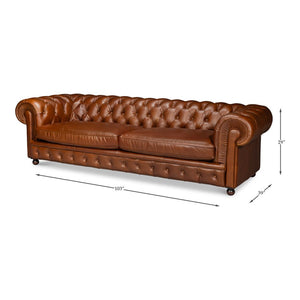 The British Brown Leather Chesterfield Sofa – Tufted Classic Rolled Arm Couch brings classic British style to any room with its well-known shape and expert upholstery. With deep button tufting, rolled arms that line up with the back, and a low, neat seat, this sofa has a strong yet elegant look that has been a favorite in stylish homes for generations.