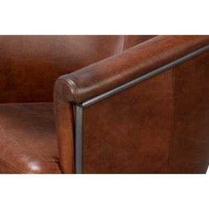 The Brown Leather Tub Chair is a stunning fusion of modern design and luxurious materials. Upholstered in premium full-grain leather in Newark Brown, this chair exudes sophistication and timeless style. The curved tub silhouette provides ergonomic comfort, while the sleek iron frame adds a contemporary edge and sturdy support.