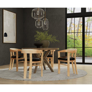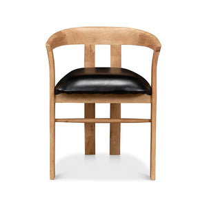 Upgrade your dining area with the sleek Contemporary Dining Chair. Constructed from solid hardwood, this chair boasts a natural wood finish that showcases its stylish design. The seat pad, upholstered in premium top-grain leather, adds a luxurious and comfortable touch.