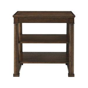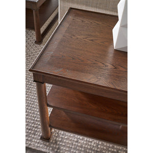 Handcrafted in oak and finished in a warm Brownstone hue, this table exudes timeless charm. The design features three tiers and is perfect for displaying your favorite books or decorative items. Whether placed beside a sofa or used as an accent table, this versatile piece is sure to elevate the aesthetic of any room.