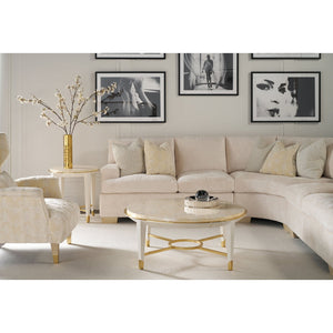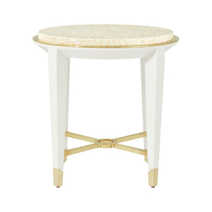 The Hollywood Regency Round Side Table brings timeless glamour to center stage with its luxurious materials and refined detailing. The hand-painted and polished tabletop features a swirling, feather-like pattern that adds organic elegance and visual depth to its sculptural silhouette.
