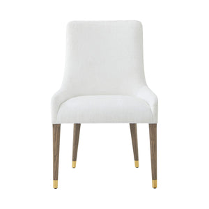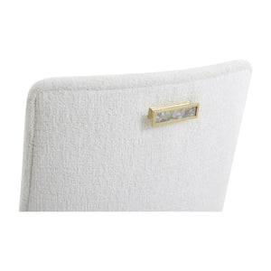 With its curved silhouette and couture details, the Hollywood Regency Upholstered Dining Chair brings an elegant softness to any dining setting. The over-upholstered backrest and seat are tailored for comfort and style, creating a sculptural profile that’s both refined and inviting.