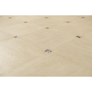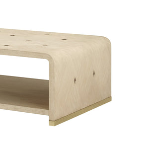 Delicate inlaid diamond motifs add an element of refined artistry across the top and sides, while the open shelf provides space for books or curated accents. A subtle brass base trim completes the look, adding a whisper of glamour to this versatile centerpiece.