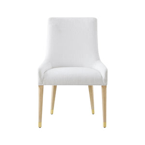 With its curved silhouette and couture details, the Light Hollywood Regency Upholstered Dining Chair brings an elegant softness to any dining setting. The over-upholstered backrest and seat are tailored for comfort and style, creating a sculptural profile that’s both refined and inviting.