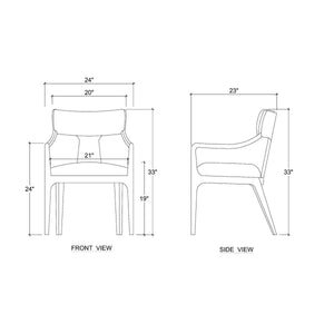 Tapered legs and integrated armrests flow from the frame, emphasizing clean lines and organic form. A tailored seat cushion in dark green smoke performance fabric adds comfort and contrast, balancing warmth with restraint. Designed to elevate dining spaces, offices, or hospitality interiors, this armchair offers enduring sophistication rooted in thoughtful design and material integrity.