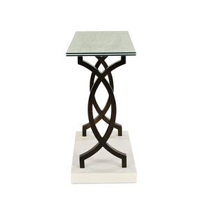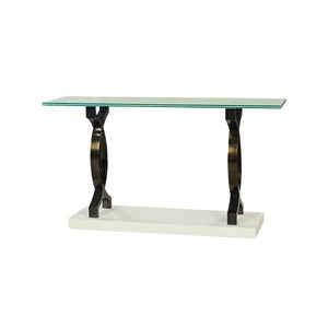 The Modern Glass Top Console Table strikes a bold balance between contemporary elegance and sculptural sophistication. A cracked glass top brings dynamic texture and shimmer, while the hand-painted Egret finish on the wood base offers a soft, refined contrast. Anchoring the piece are two dramatic, stainless steel legs with a twisted silhouette that add architectural presence and a sense of movement.