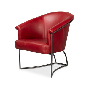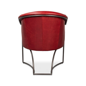 The Red Leather Tub Chair is a stunning fusion of modern design and luxurious materials. Upholstered in premium full-grain leather in Rouge Red, this chair exudes sophistication and timeless style. The curved tub silhouette provides ergonomic comfort, while the sleek iron frame adds a contemporary edge and sturdy support.