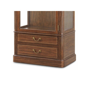 The Regency Display Bookcase blends timeless English design with modern function, showcasing an exquisite use of figured walnut in a rich warm finish. Drawing inspiration from classic Regency-era cabinetry, the piece is detailed with traditional reeded accents and finished with classic brass hardware and trim that elevates its refined character.