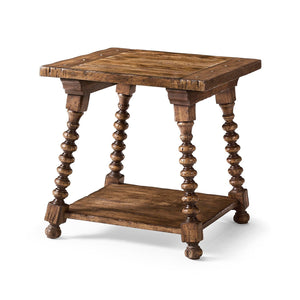 The table’s spool-style legs add a graceful, sculpted look, supported by square blocks and ball feet. A fixed lower shelf gives you extra space for books, baskets, or decorations. Built to be both sturdy and attractive, this side table works well next to a sofa or chair and fits right in with traditional, Mediterranean, or rustic decor.