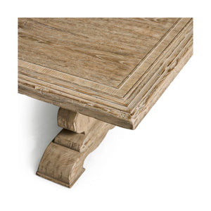 Inspired by Spanish Renaissance Revival style, this table features bold trestle legs with scroll-carved supports and a strong center stretcher for both stability and style. Its lower height gives a modern twist to classic banquet tables, combining rustic charm with practical use. This coffee table fits well in traditional, Mediterranean, or farmhouse spaces, offering lasting craftsmanship in a comfortable size.