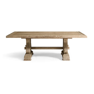 The Rustic Farmhouse Trestle Coffee Table adds a sculptural look and classic charm to your living room. Made from oak with a Timeron Grey Oak finish, its thick top shows off the wood’s natural grain and a gently weathered surface, giving it the feel of an antique European piece. Its large rectangular shape feels sturdy but still elegant, making it a warm and textured centerpiece for your seating area.