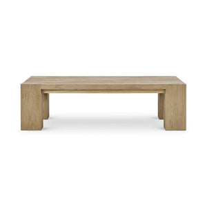 The Rustic Scandinavian Teak Coffee Table stands out in your living room with its bold, minimalist design and weathered teak finish that adds depth and character. Made from solid teak wood with an aged look, it has sturdy block legs set slightly inward, giving the table a floating appearance that feels both substantial and light. Its low profile and large surface make it ideal for bringing your seating area together, while the natural wood grain creates unique patterns across the tabletop.