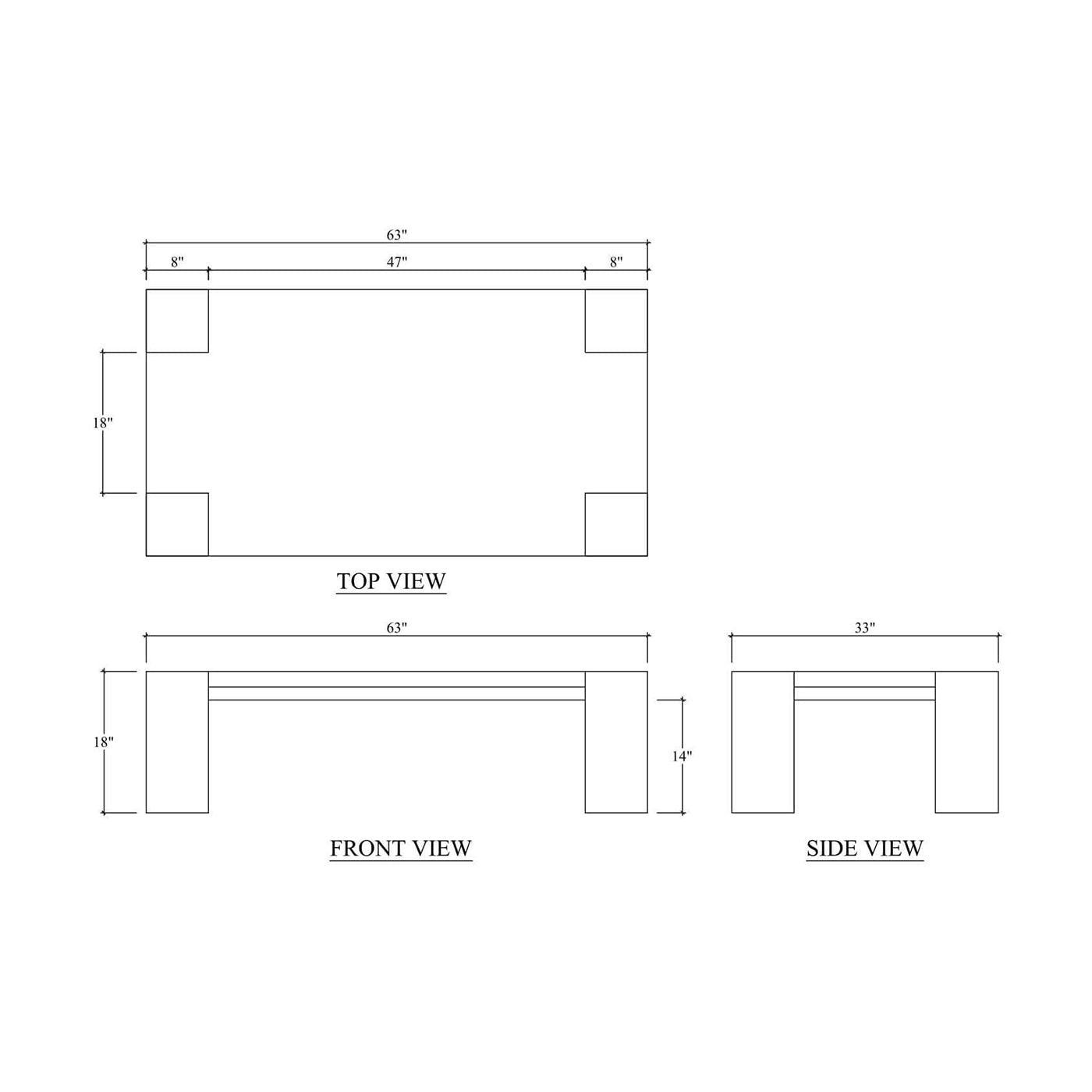 Dimensions: 63" W x 33" D x 18" H