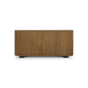 Minimal hardware and built-in cylindrical feet keep the sideboard’s look clean and simple, letting the materials and shape stand out. Inspired by Scandinavian and European design, this piece combines warmth and simplicity, making it a stylish choice for dining rooms, living areas, or open spaces. Its calm look and roomy storage make it practical for everyday use while still feeling refined.