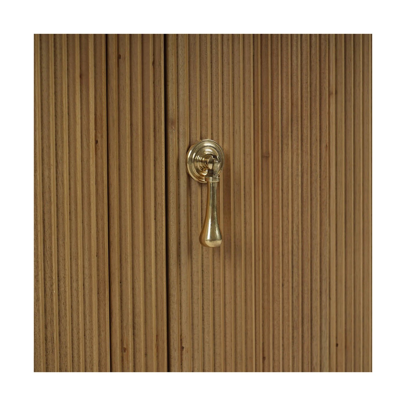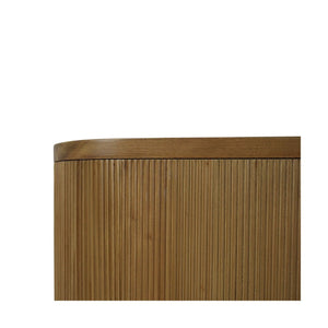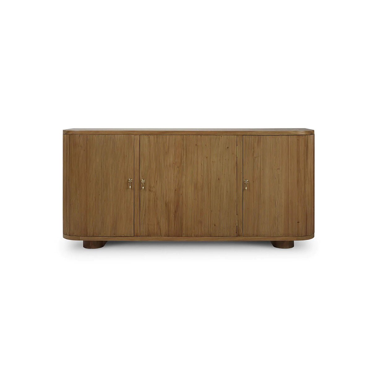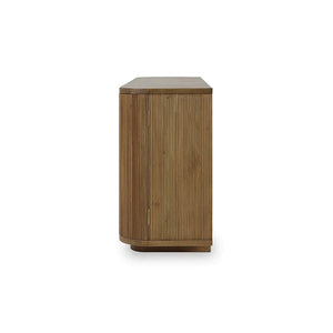 The Scandinavian Reeded Wood Sideboard blends soft minimalism with architectural texture in a modern design. Made from mahogany and finished in a warm Antique French Oak color, it features reeded front panels that add gentle rhythm and depth without extra decoration. Rounded corners and smooth edges soften the straight lines, giving the piece a grounded yet sculptural feel.