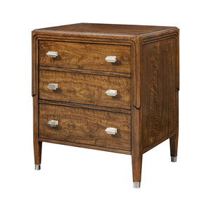 The Walnut Art Deco Nightstand possesses a refined presence that recalls the early 1900s. Embodying the refined luxury of early 20th-century design, this bedside chest is crafted with exquisite figured walnut, showcasing a rich wood grain that adds depth and character. Its poised silhouette is enhanced by expertly tapered legs and subtle molding details, while sleek metal hardware introduces a contemporary touch.