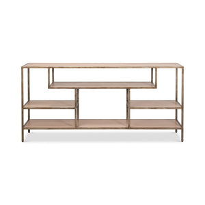 Ideal for displaying decor, books, or collectibles, this versatile console table fits seamlessly into living rooms, hallways, or office spaces. Its geometric open design enhances visual appeal while providing functional storage.