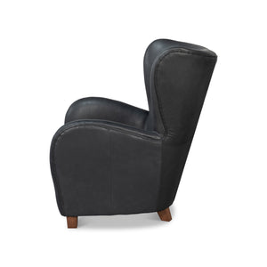 The Black Leather Modern Wing Chair in leather combines contemporary design with timeless comfort. Upholstered in supple top-grain aniline leather, the chair boasts a soft, smooth texture that enhances its refined appearance. The gracefully curved edges and wingback silhouette create a sophisticated yet inviting look.