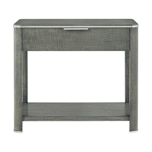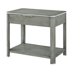 Embrace quiet sophistication with the Grey Art Deco Style Nightstand. This elegant piece showcases a stunning combination of layered oak, stainless steel, and maple veneers, making it a refined addition to any bedroom decor. The Pebble Grey finish adds a touch of modern while highlighting the natural beauty of the wood grain.