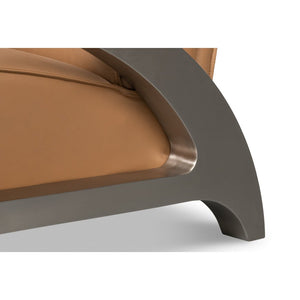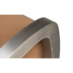 The Industrial Brown Leather Armchair is a bold statement of modern design and luxurious comfort. Upholstered in supple top-grain caramel brown chair leather, it offers a sleek and sophisticated look that complements its brushed stainless steel arms and base.