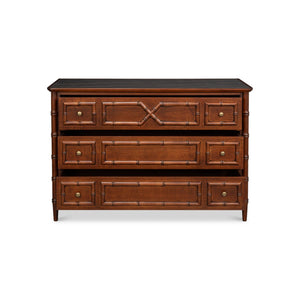 The Large Faux Bamboo 3-Drawer Chest blends classic elegance with practical functionality. Inspired by British Colonial influences, it features refined faux bamboo moldings along the drawers and corners, adding a sense of texture and craftsmanship.