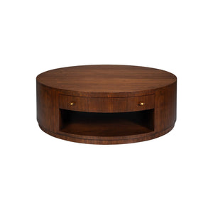 The Large Mid-Century Modern Round Coffee Table combines timeless design with everyday functionality. Crafted in a warm walnut finish, this striking piece features a bold circular form that anchors any living room with sophistication. Its expansive 56-inch diameter offers ample surface area, making it ideal for entertaining or displaying decorative accents.