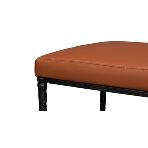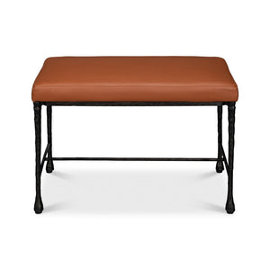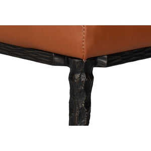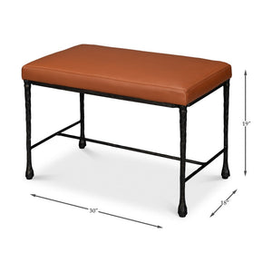 The Leather and Iron Rustic Small Bench is a masterful blend of timeless craftsmanship and understated elegance. Its sturdy handwrought iron base features a textured finish and tapered legs, showcasing authentic artisanal design. Topped with a plush caramel-brown leather seat, this bench offers both comfort and style in equal measure.