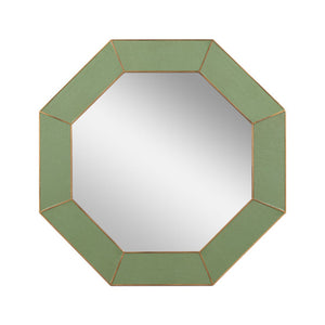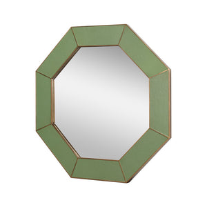 The Mid Century Green Octagonal Leather Mirror is a bold statement of retro elegance and modern craftsmanship. Wrapped in vibrant watercress green shagreen embossed leather, the frame is adorned with handcrafted gold accents, adding a touch of timeless sophistication. At its center, the beveled mirror enhances the design with added depth and a polished, luxurious finish.