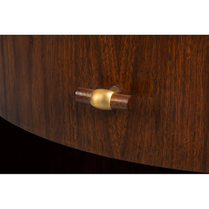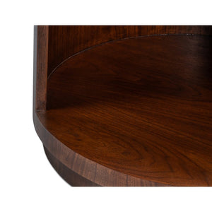 The Mid-Century Modern Round End Table pairs sleek design with functional versatility, making it the perfect companion to contemporary and transitional interiors. Crafted in a warm walnut finish, this piece features a refined circular profile that emphasizes symmetry and clean lines. The brass hardware detail adds a subtle touch of elegance, highlighting its mid-century inspiration.
