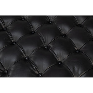 The Modern Black Leather Cocktail Ottoman is a harmonious blend of luxury and timeless design. Featuring a button tufted top crafted from premium top-grain leather, it offers both comfort and style. The elegantly finished wood base and trim add warmth, while the sleek metal legs provide contemporary sophistication and stability.