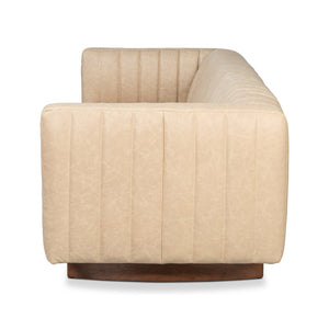 The Modern Channel Tufted White Leather Sofa seamlessly blends sleek design with luxurious comfort, making it an elegant centerpiece for contemporary spaces. Upholstered in premium Cappucino white top-grain leather, it exudes sophistication, while the vertical channel tufting adds textse and visual interest.