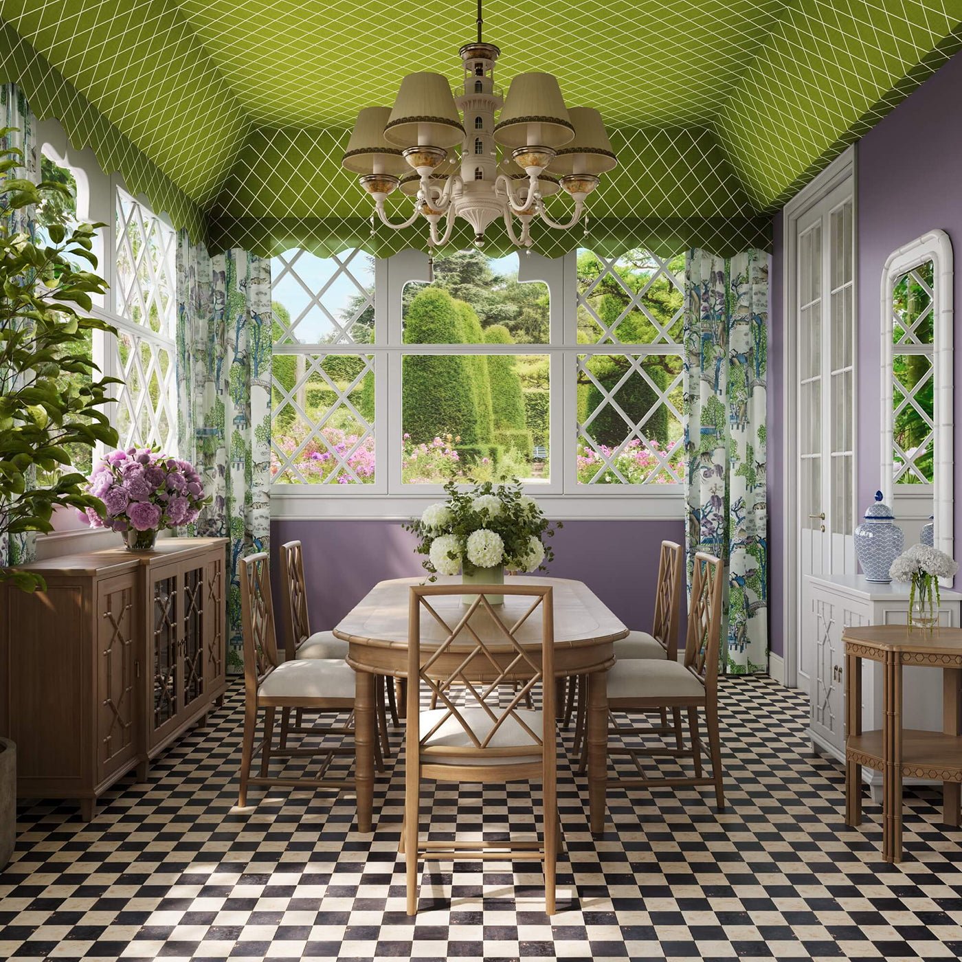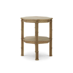 The Octagon Faux Bamboo Side Table blends geometric elegance with timeless Chinoiserie style. Handcrafted from solid mahogany and finished in a warm fruitwood tone, it features a faux bamboo frame accented by honeycomb apron detailing that adds subtle texture and visual depth.