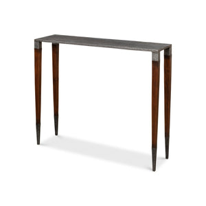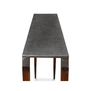 Perfectly scaled for hallways, entryways, or behind a sofa, the slim profile allows this table to fit seamlessly into smaller spaces without sacrificing presence. The mix of warm wood and textured metal adds depth and dimension, making it an elegant accent for both contemporary and traditional interiors. A balance of craftsmanship and design, this piece reflects understated luxury in every detail.