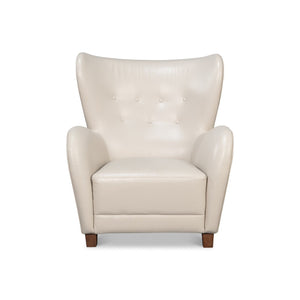 The White Leather Modern Wing Chair in leather combines contemporary design with timeless comfort. Upholstered in supple top-grain aniline leather, the chair boasts a soft, smooth texture that enhances its refined appearance. The gracefully curved edges and wingback silhouette create a sophisticated yet inviting look.