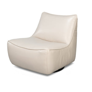 The Leather Swivel Slipper Chair blends modern sophistication with vintage-inspired charm. Upholstered in soft, supple top-grain crystal white leather, this chair offers unmatched comfort and understated elegance. Its minimalist slipper design is enhanced by a smooth swivel base, making it a versatile addition to any room.