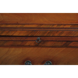 A Fine George II figured mahogany chest on chest with a carved dental molded top cornice, the top section with two split drawers over three graduated drawers, canted and fluted corners above a three graduated drawer lower section also has a brushing slide, all cock beaded edge drawers are framed with exotic veneers and with swan neck brass handles, raised on bracket feet. England, ca 1800
