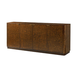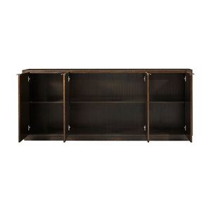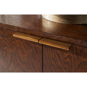 The warm Pyramid Brown finish enhances its timeless appeal, while the sleek Satin Brass handles add a touch of modern sophistication. With four cupboard doors, this sideboard offers ample storage for your dinnerware, linens, and other essentials, blending functionality with stunning design.