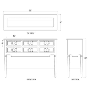Dimensions: 55" W x 16" D x 39" H