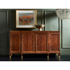 This stately cabinet combines generous proportions with practical functionality through four cabinet sections, each fitted with adjustable interior shelves for customizable storage. The elevated stance on square tapered legs creates an elegant presence, making it an ideal centerpiece for formal dining rooms or grand entryways where both storage and sophistication are essential.