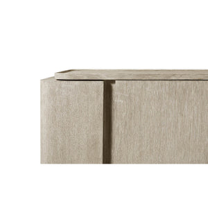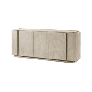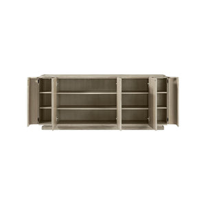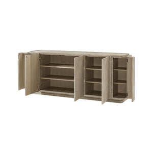 Light Oak Modern Buffet in a hand-rubbed light gray oak finish. Handcrafted from solid wood, the multistep, hand-finishing process on this 78-inch triple door sideboard creates a beautiful brushed-like effect that enhances the natural grain variation of the Oak Vaneer.