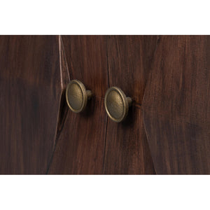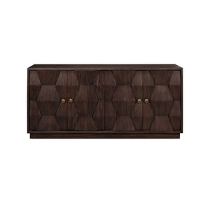 Mid Century Modern Sideboard, inspired by classic Brutalism Architecture with an unusual interlaced pattern. The four-door sideboard cabinet has a warm brown finish to the bold mango wood frame.