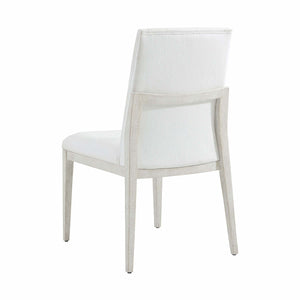 Coastal Breeze Upholstered Side Chair, in our Sea Salt finish, the upholstered side chair displays a comfortable upholstered seat with a fully upholstered back. Raised on square tapered legs.