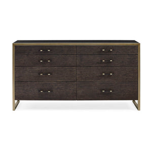 Modern Cerused Double Dresser, a restrained silhouette is brought to life with a modern layering of bold finishes and warm metallics. While this dresser offers several spacious drawers beautifully finished in Cerused Oak, the beauty of the piece is found in its geometric simplicity.