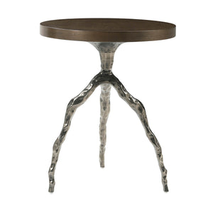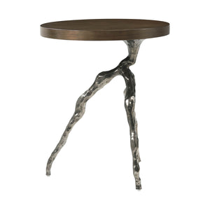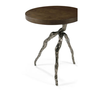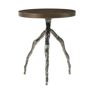 Introducing our Modern Faux Bois Accent Table in the dark earth finish. This contemporary piece combines the natural beauty of figured ash with a cast metal branch form base in our stunning Volcanic finish. With its sleek design and impeccable craftsmanship, this accent table adds a touch of organic elegance to any space.