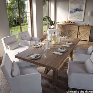 Rustic 96-Inch Reclaimed Teak Dining Table - Elevate your dining experience with this exquisite 96-inch dining table crafted from reclaimed teak wood and finished in Teak Straw Wash. Featuring a robust and rustic design, this table is perfect for adding a touch of natural elegance to any dining space.