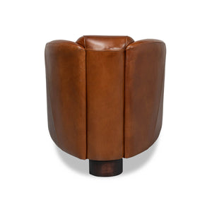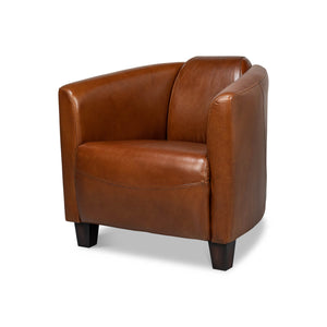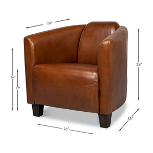 Vintage-style brown leather club chair. Crafted of luxurious top grain leather in warm brown color, this stylish and comfortable chair is perfect for your den, library, or living room.