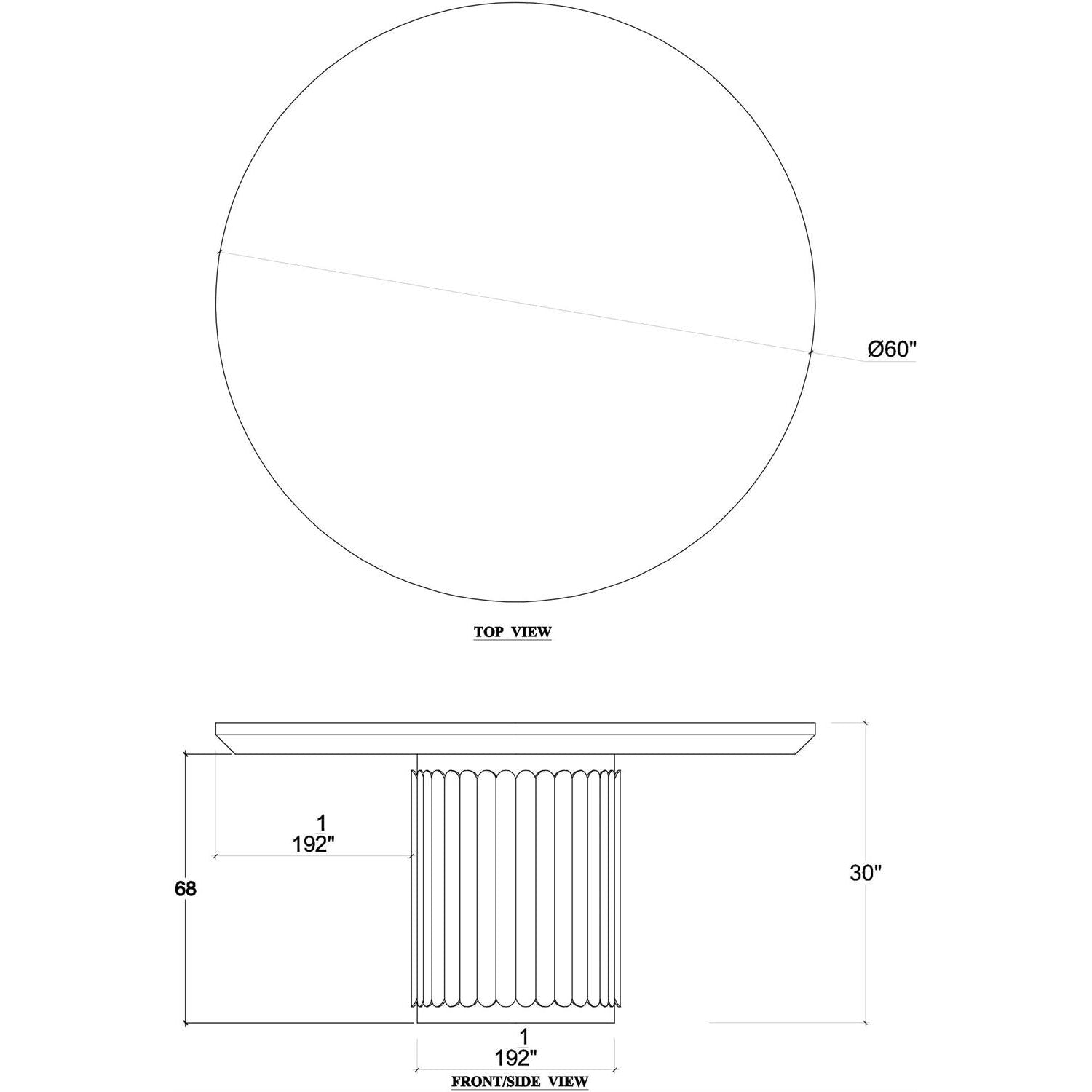 60" Round Ribbed Pedestal Dining Table - Antique French Finish