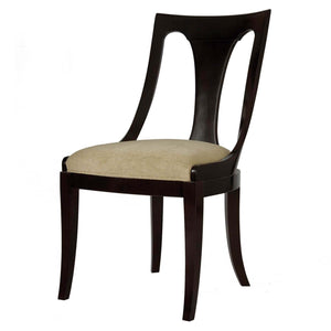 The simplistic lines of this chair can be traced to the finest shops of Paris during the turn of the 19th Century. A slender baluster splat seamlessly joins the curved top rail. The graceful side rails turn to flow and align with the seat. Grecian saber, front legs support the chair frame making this a truly timeless design. Spring seat construction.