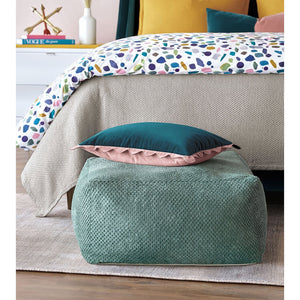 Elevate your living space with the Aqua Fabric Square Pouf, a perfect blend of modern sophistication and plush comfort. Upholstered in the luxurious Azizi Aqua fabric, this versatile piece adds a soft, textured touch to any setting. The knife edge finish enhances its sleek silhouette, while the densely filled 1/4" poly batting and polystyrene beads provide exceptional support and durability.