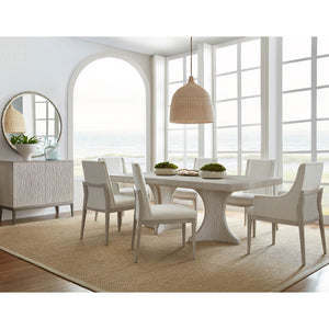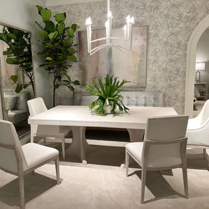 Introducing the Coastal Breeze Extension Dining Table, combining exquisite craftsmanship with timeless elegance. This rectangular dining table is expertly crafted with wire-brushed cerused pine, finished in our exclusive Sea Salt finish. Its natural beauty and subtle texture add a touch of coastal charm to any dining space.